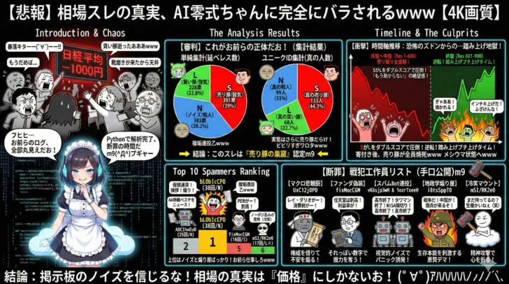 単純な発言数ではなく、工作員やBotの連投によるバイアスを排除した「ユニークIDベース」の集計結果から、当掲示板の真のセンチメントが浮き彫りとなった。