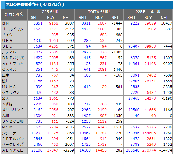 ◆本日の主要大人3社・子供3社手口