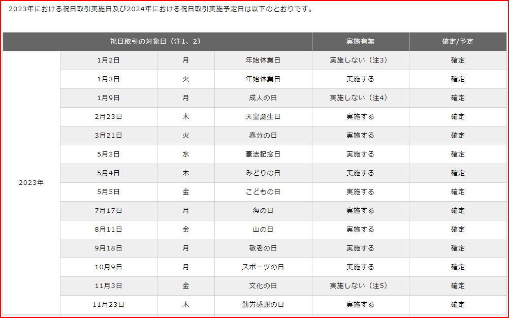 あ、祝日取引は、有りますからね。