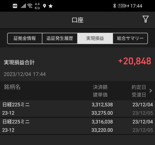 デイでは、一本糞が安値を付けるのをひたすら待ちリバウンドの上弦を狙い(待つのめちゃ長かった)戻りを叩くロングスキャを2回成功させ200円幅をゲット。