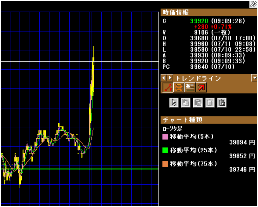 8:58 おおおおまだ上がるか?39900触った。