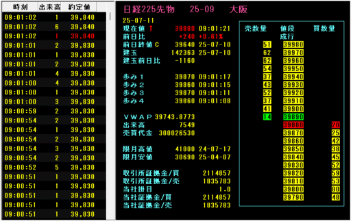 8:45 225先物は39740円で開始。